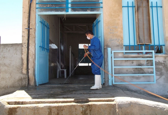 سمپاشی کشتارگاه دام اسفراین جهت جلوگیری از سرایت بیماری تب کریمه کنگو((CCHF