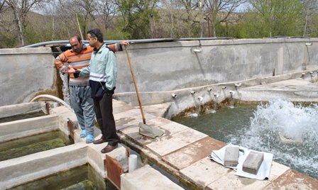 بازدید دکتر یاوری معاون توسعه مدیریت و متخصص بیماری های آبزیان به همراه دکتر حسینی رئیس اداره بهداشت و بیماری های طیور و آبزیان اداره کل خراسان شمالی از مزارع پرورش و تکثیر آبزیان در روستای گلیان شهرستان شیروان- 22 فروردین 95