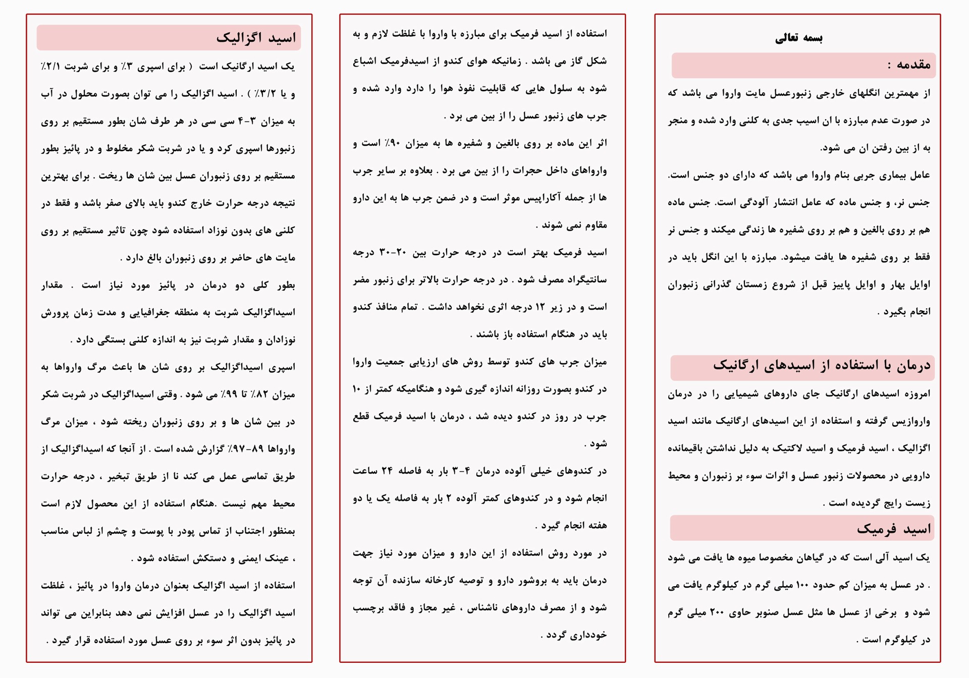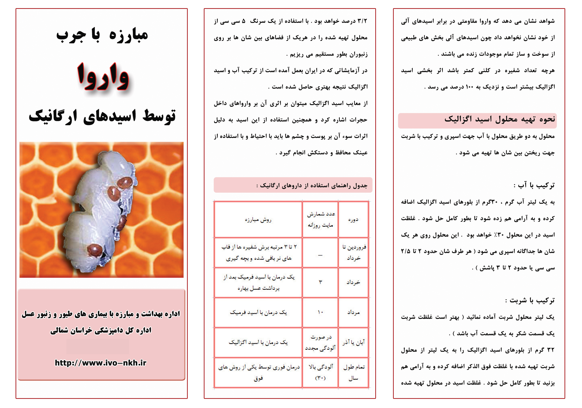 مبارزه با جرب واروا در زنبور 1402/09/14 - 11:37 - تعداد بازدید: 37 - کد خبر : 311642 - گروه خبری : هشدارهای بهداشتی - تعداد نظرات : 0