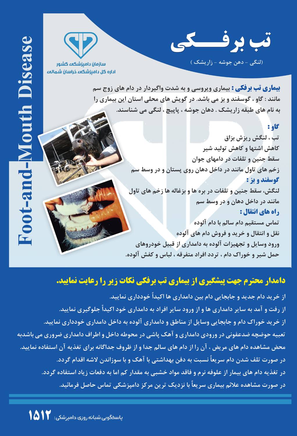هشدار به دامداران درخصوص پیشگیری از بیماری تب برفکی 1402/09/14 - 00:13 - تعداد بازدید: 109 - کد خبر : 311643 - گروه خبری : هشدارهای بهداشتی - تعداد نظرات : 0